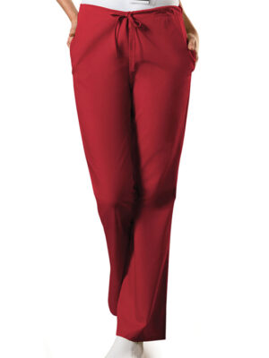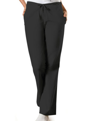 Side vents at the bottom of this Modern Classic fit, natural rise, flare leg pant make a fashion statement. An adjustable front drawstring, back elastic waist, slash pockets, and one back patch pocket are also featured. Inseam 31″.
